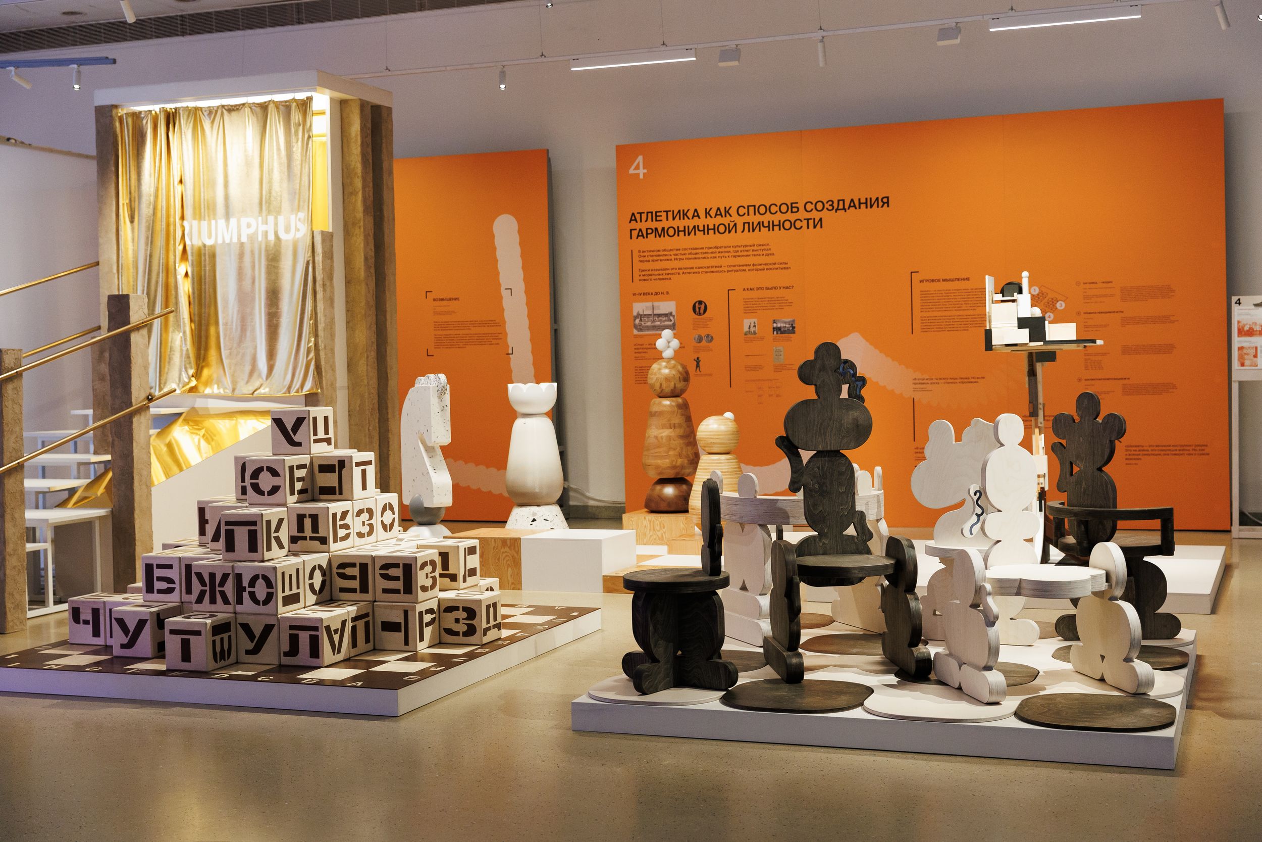 В экспозиции представлены олимпийские факелы из коллекции Владимира Потанина — артефакты, позволяющие проследить историю спорта через дизайн каждой эпохи. Рядом — работы современных авторов: Оли Кройтор, Саши Посоха, Ольги Пташник, Маши Базилевской, Pärla и Eburet. Один из разделов создан совместно с Технопарком и Фондом «Сколково» и знакомит с инновациями SportTech Sk — разработками, которые меняют тренировочный процесс и расширяют представления о возможностях тела.